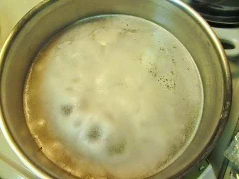 {It takes about 5 minutes for all the carbon to release, and you will think that the beer will overflow the pot (picture left). Then you will begin to see beer again meaning that it's almost cheese time!}